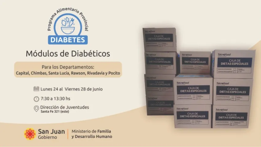 El próximo lunes 24 de junio comenzará la entrega de módulos alimentarios a diabéticos en la Dirección de Juventudes ubicada en calle Santa Fe 321 (e) en horario de 7:30 a 13:30 horas.
