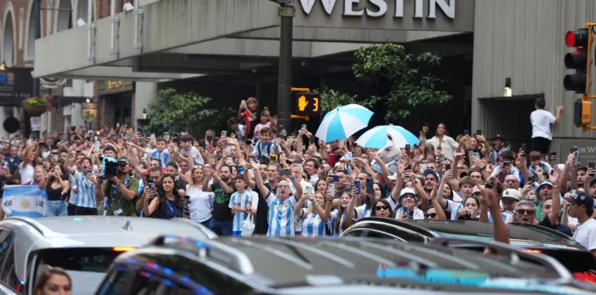 Los hinchas argentinos ya están arribando al Mercedes Benz Stadium. En las inmediaciones del estadio del Atlanta ya se pueden ver las camisetas albicelestes, un buen número de hinchas armando la previa y varios puestos para comprar remeras.