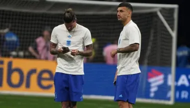 >> Llegó el plantel argentino al estadio y dos jugadores cumplieron con lo suyo pasaron por el vestuario, se acercaron a su lugar asignado, retiraron lo que tenían preparado y salieron al campo de juego para comer los 10 caramelos sugus de colores rojos, amarillos, verde y azul. Rodrigo De Paul y Leandro Paredes no cambian.