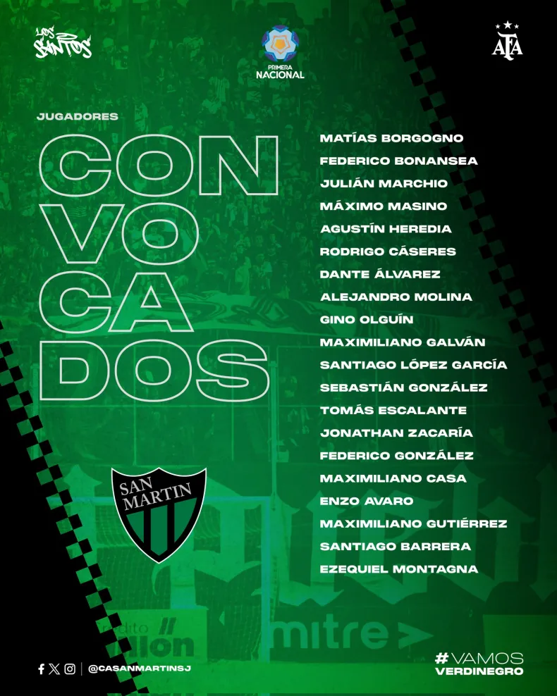Además de estos once y como novedad se cuenta la presencia del primer refuerzo llegado en esta semana el delantero Enzo Avaro. Otro de los datos es el regreso de dos sanjuaninos al plantel Maximiliano Galván de un excelente presente en el torneo local y Santiago Barrera, el delantero que volvió a estar en la consideración del cuerpo técnico.