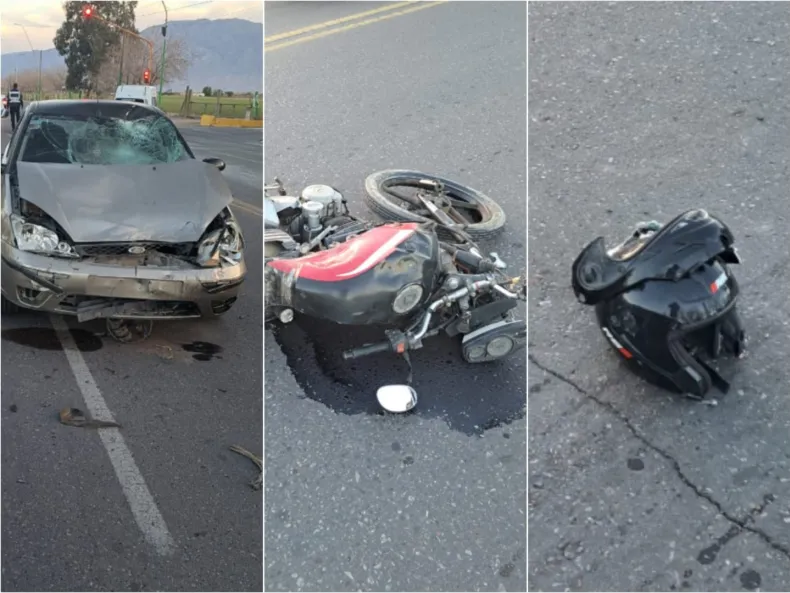 Un fuerte choque dejó en malherido a un motociclista. Ocurrió en la tarde de este sábado, en Av. Joaquín Uñac y calle 8, en Pocito, cuando un Ford Focus lo embistió.