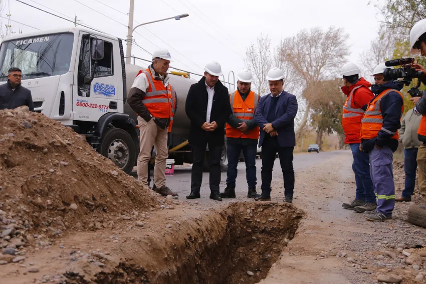 La obra, que servirá como refuerzo de la red distribuidora de agua potable en la zona suroeste de Rawson y noroeste de Pocito, la realiza OSSE, por administración, lo que implica un ahorro de $130 millones.