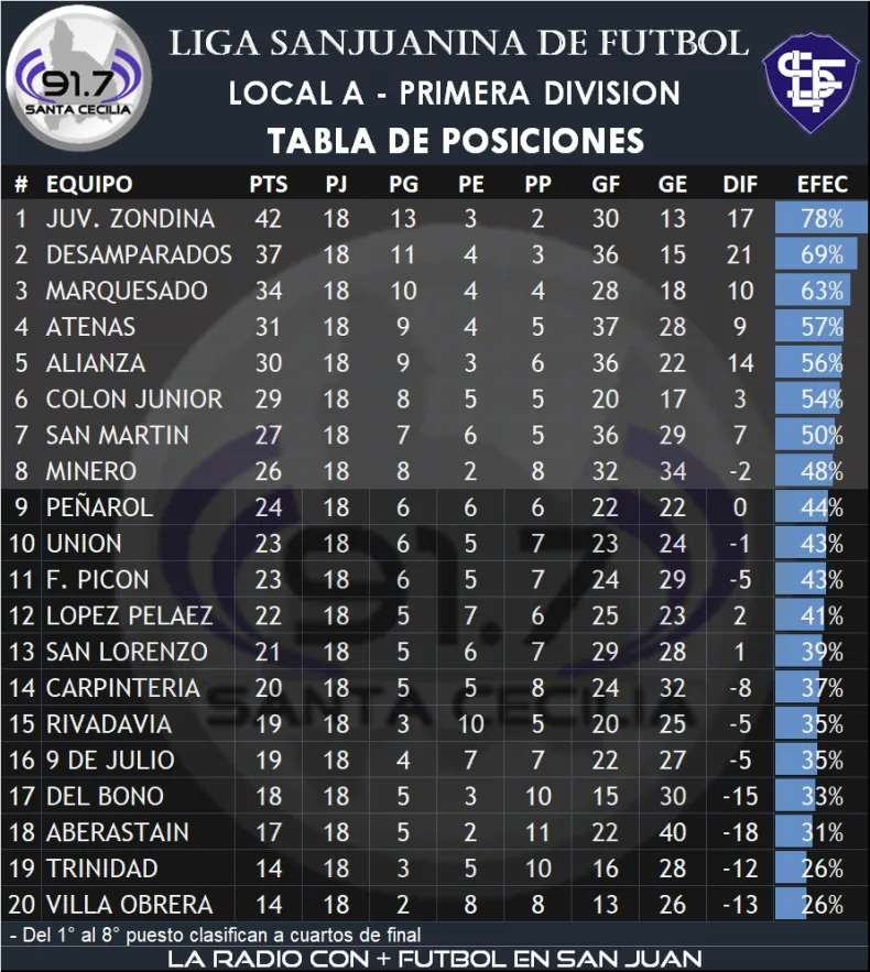 Juventud Zondina, Desamparados, Marquesado, Atenas, Alianza y Colón ya clasificados, la tensión se mantiene al máximo de cara a la última fecha. San Martín y Minero son los únicos que dependen de sí mismos para clasificar. En contraste, equipos como Peñarol, Unión y Federico Picón aún albergan esperanzas pero están obligados a ganar y esperar otros resultados para seguir en competencia.