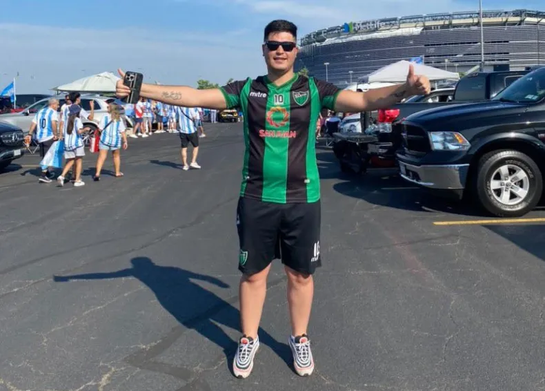 Banderas argentinas y camisetas albicelestes son las que se predominan, pero en el medio de toda esa locura argentina se vio a un sanjuanino con la camiseta Verdinegra de San Martín