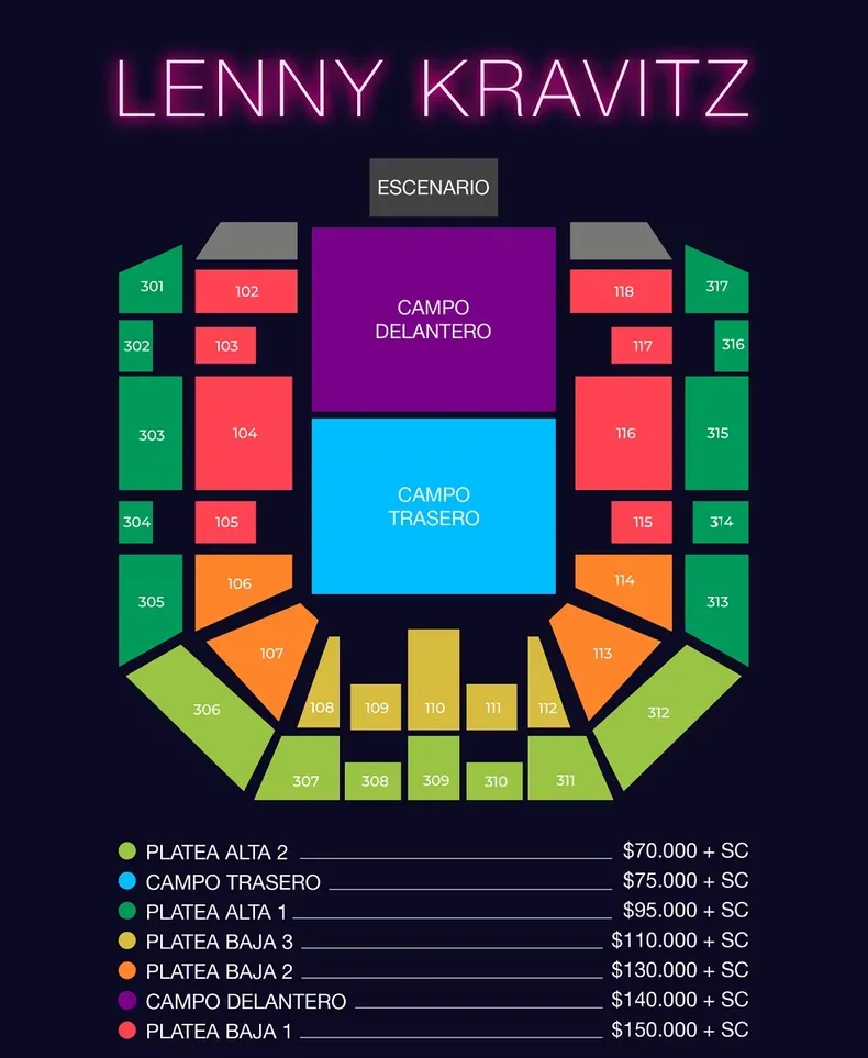 La preventa exclusiva para clientes de Banco Patagonia comenzará este miércoles 26 de junio desde las 10 de la mañana en el sitio web oficial del Movistar Arena y durará 24 horas o hasta agotar stock. Luego, la venta general se iniciará automáticamente. Los precios de las entradas, sin incluir los cargos de servicio, son los siguientes: