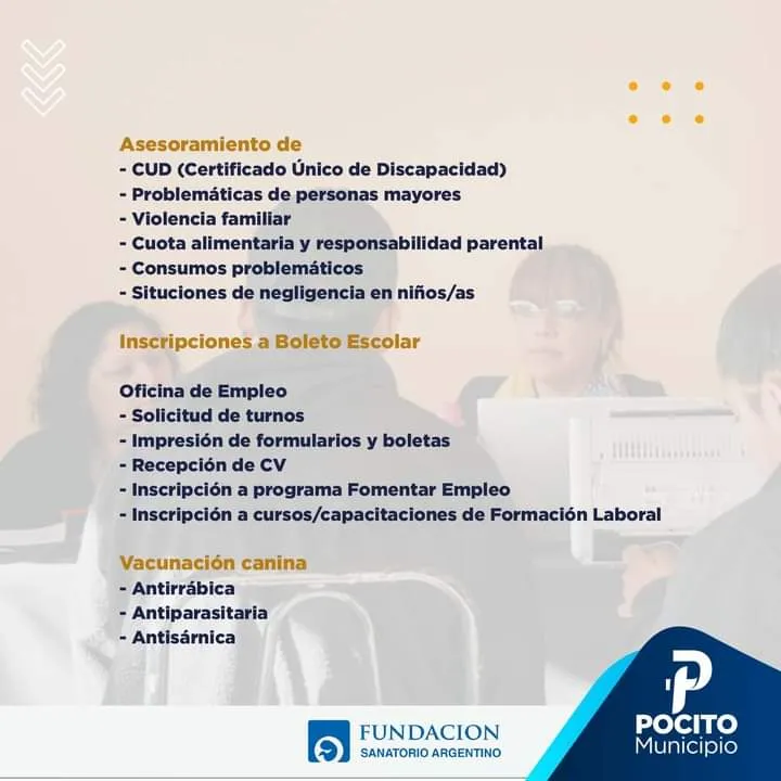 Los vecinos del departamento Pocito podrán recibir asesoramiento sobre diversos temas. El operativo comienza a las 9.00: