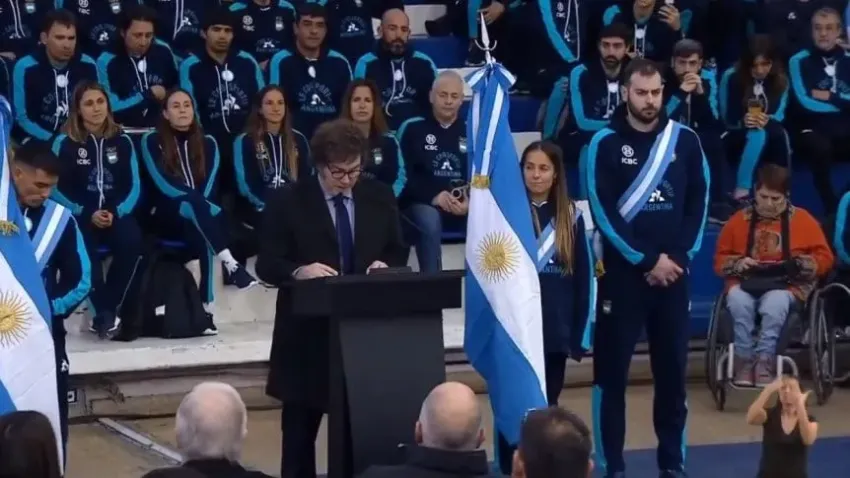 "Con esfuerzo y confianza en uno, estoy seguro de que todos sus sueños se harán realidad y que llenarán de orgullo al pueblo argentino. Quiero felicitar a todos los atletas que estarán viajando a París a representar a la Argentina en la cita olímpica, y felicitar en particular a los abanderados olímpicos y paralímpicos", expresó Milei en su discurso.