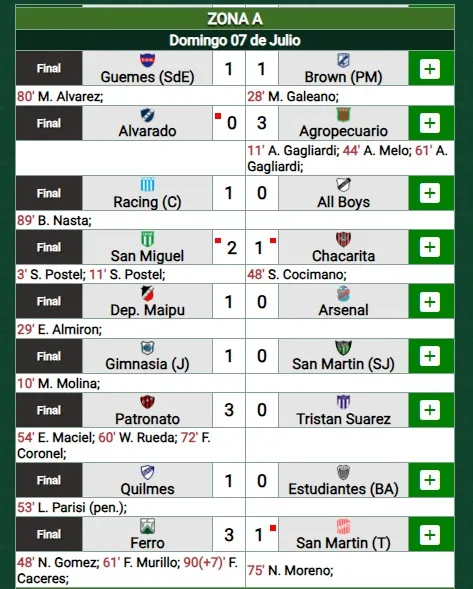 Si bien el Verdinegro sanjuanino perdió en Jujuy con Gimnasia 1 a 0 pero no perdió la punta del grupo A ya que su perseguidor, San Martín de Tucumán perdió con Ferro y se mantien los dos puntos de ventaja.