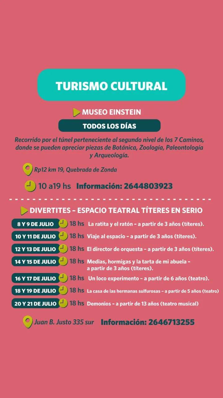 Finalmente, el turismo cultural y de aventura también se anotan en estas fechas con un variado calendario de museología, títeres, tirolesa y trekking.