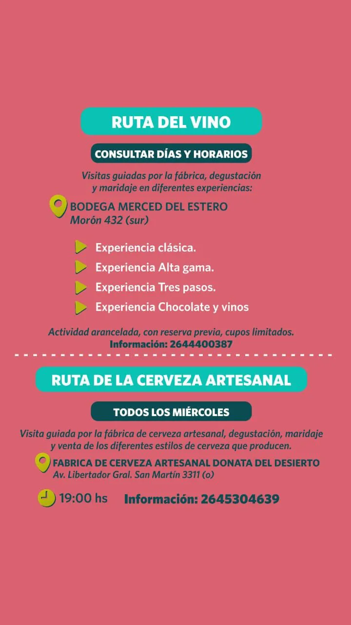 De ahí que la Municipalidad de Rivadavia trabaja junto al Gobierno de San Juan y la Cámara de Prestadores Turísticos en la confección de un importante cronograma de actividades, que incluye visitas guiadas, degustaciones, maridajes, ecología y aventura en este receso invernal.