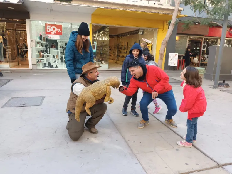 El Dino Baby ya se ha vuelto famoso entre los sanjuaninos que recorren el centro. Es que el nuevo atractivo del Parque Provincial Ischigualasto está en la Ciudad desde el 8 de julio y entretiene a los más pequeños y se lleva la atención y el cariño de los ocasionales transeúntes, muchos de ellos turistas que han llegado desde distintos puntos de la provincia.