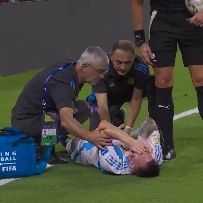A los 35 minutos del primer tiempo ante Colombia en Miami, Lionel Messi alarmó a todos. Porque fue hasta la línea de fondo a pelear una pelota con Santiago Arias y, en su intento por tirar un centro de zurda, el 10 terminó golpeándose el tobillo derecho en la disputa con el lateral colombiano.