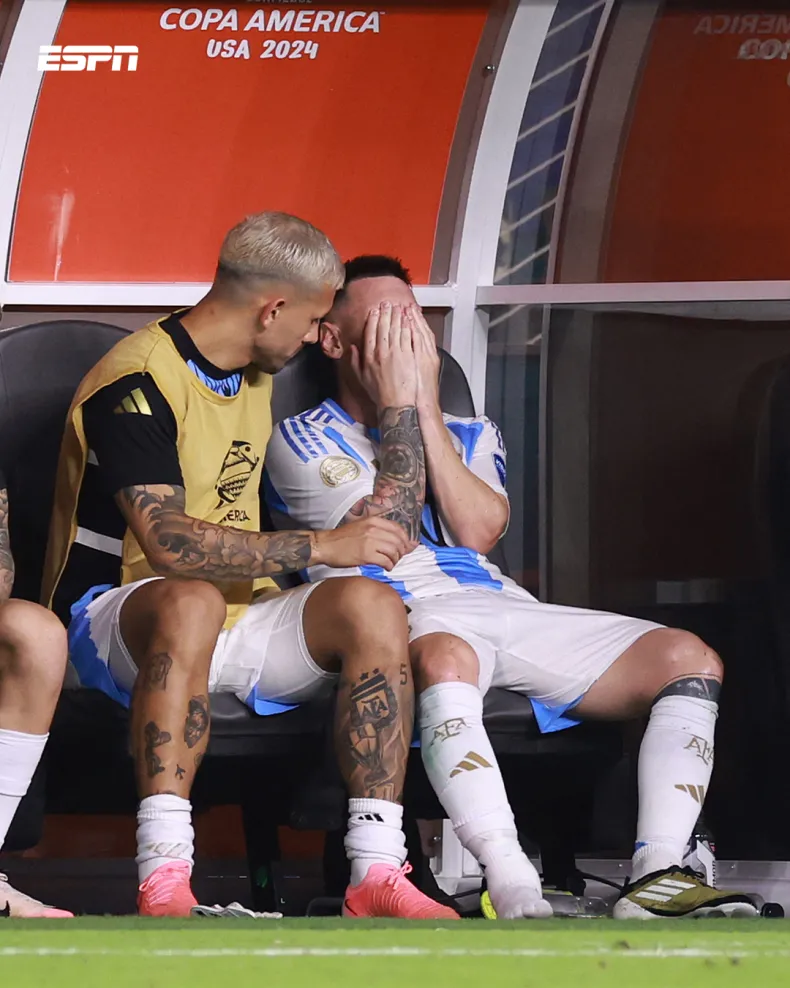 En su décima final con la celeste y blanca, el astro no pudo completar el partido definitorio ante Colombia y se retiró lesionado promediando la segunda etapa.