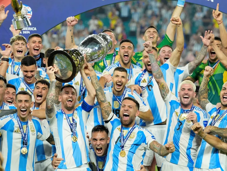 Tras consagrarse bicampeones de América, la Selección Argentina disfrutó de una noche que se hizo menos larga de lo previsto. Es que por la demora en el inicio de la final, luego de los incidentes con el público en el ingreso de la cancha, el partido ante Colombia comenzó más tarde de lo estipulado y que el encuentro se haya estirado al suplementario, acortó más la celebración del título.