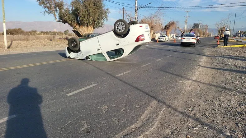 Una mujer, identificada como Nilda Pérez, tuvo que ser atendida en el lugar, luego de protagonizar un choque seguido de vuelco, cuando se movilizaba por calle Comandante Cabot y Bellas Artes, en el departamento Rivadavia.