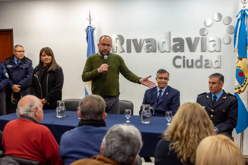 La Municipalidad de Rivadavia llevó adelante por primera vez una reunión sobre seguridad ciudadana con la presencia del Secretario de Seguridad, el Jefe de Policía e instituciones del departamento en el edificio municipal.