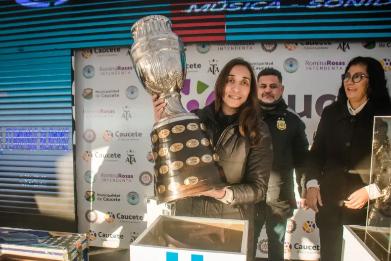 La intendenta Romina Rosas, visiblemente emocionada, agradeció a la AFA y a Claudio "Chiqui" Tapia por la oportunidad de recibir a las copas en su ciudad. "Nuestro corazón caucetero les agradece profundamente. Hoy, gracias a la AFA, tenemos la posibilidad de tener estas copas en nuestra casa", concluyó Rosas.