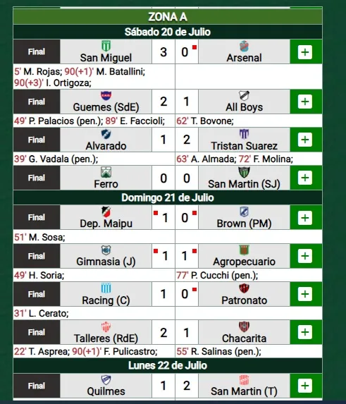 Los goles para el tucumano fueron obra de Agustín Dattola y Gonzalo Rodriguez. En tanto que había empatado transitoriamente para el Cervecero Matías Ferreira.