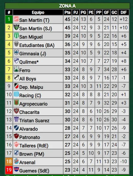 Con este triunfo San Martín de Tucuman llega a 45 puntos, la misma cantidad que tiene el Verdinegro pero con la diferencia de gol en favor de los tucumanos de 2 goles.