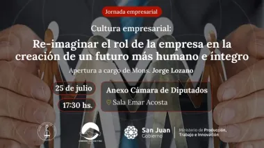 En el salón Emar Acosta, ubicado en el anexo de la Cámara de Diputados, se realizará la jornada "Cultura Empresarial: Re-imaginar el rol de la empresa en la creación de un futuro más humano e íntegro". La misma se efectuará el próximo 25 de julio a partir de las 17.30 horas y la entrada es gratuita.