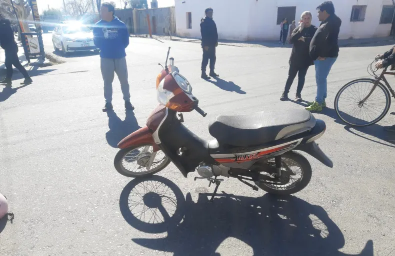 En ese momento impactó con una motocicleta marca Motomel Blitz que circulaba por calle Formosa de Este a Oeste la que circulaba Celeste Dayana Maturano Paredes y como acompañante lo hacía su hija menor de edad U.J.S. (7 años).