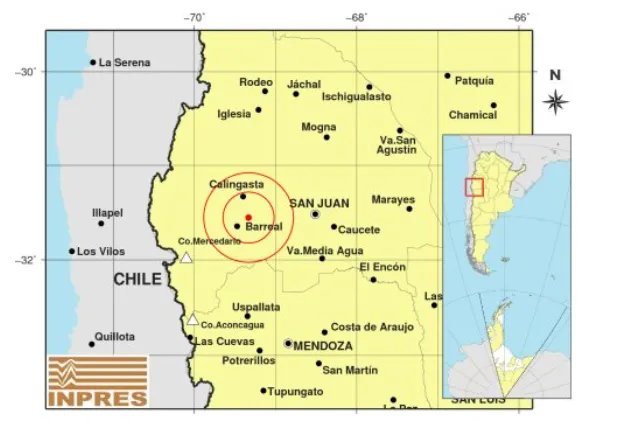 Esto ubica el epicentro en el departamento de Calingasta, cerca de Barreal.