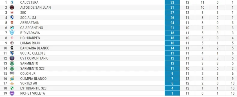 Se completó la 12° fecha del Torneo Oficial en la A2 y luego de los resultados Caucetera se mantiene en lo mas alto de la tabla.