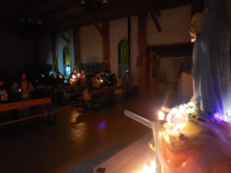 El programa de festividades incluyó una caravana por las calles del pueblo, una alternativa a la tradicional fiesta de la luz y la misa junto al río, que se canceló debido al clima adverso. A pesar de un día frío y lluvioso, la comunidad se unió en una caravana con velas, donde los participantes encendieron sus velas y cantaron en honor a la Virgen.