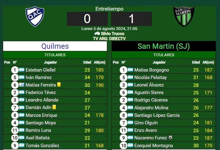 FINAL DEL PRIMER TIEMPO: Quilmes 0 - San Martín 1