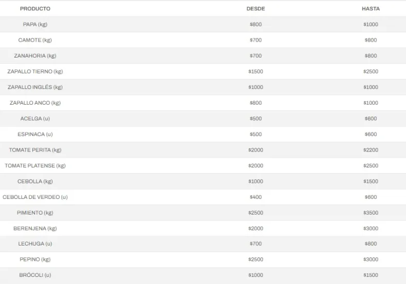 Verduras, frutas y carne: los precios actualizado de la Feria de Capital