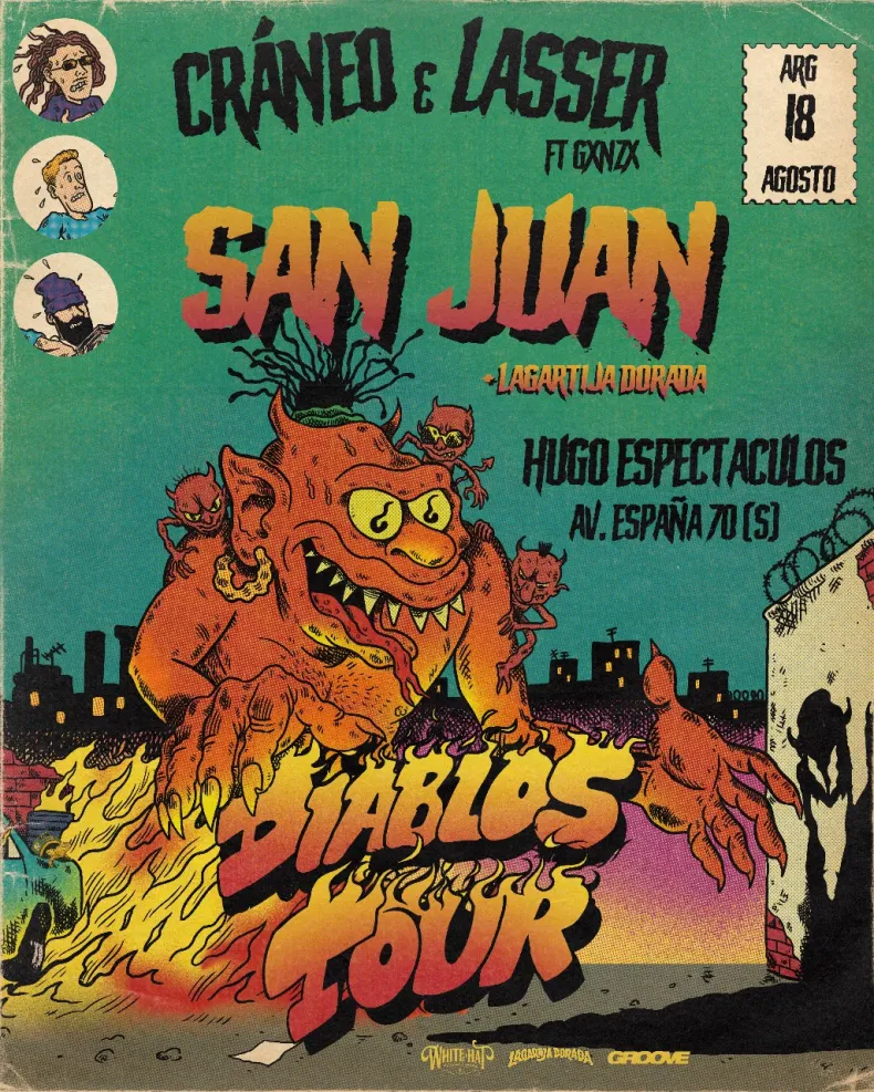 Este domingo 18 de agosto, San Juan será testigo de un evento importante en la escena musical urbana. Cráneo & Lasser, exponentes del rap lo-fi, llegan a la provincia para presentar su más reciente álbum, "Diablos y Bermudas", como parte de su "Diablos Tour" por Latinoamérica. El show tendrá lugar en Hugo Espectáculos, a partir de las 14, y contará con la participación de artistas locales, competencias de deportes extremos y diversas actividades culturales.