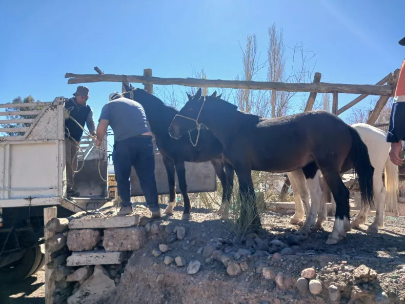 De acuerdo al informe policial, dos equinos presentaban visibles heridas con sangrando, siendo siete machos, seis yeguas, cinco mulas y un burro, que fueron trasladados con colaboración de trabajadores y camiones de la Municipalidad, a los corrales de la Dirección de Ganadería ubicada en la localidad de Barreal, a disposición del Sr. Juez de Paz Letrado Departamental.