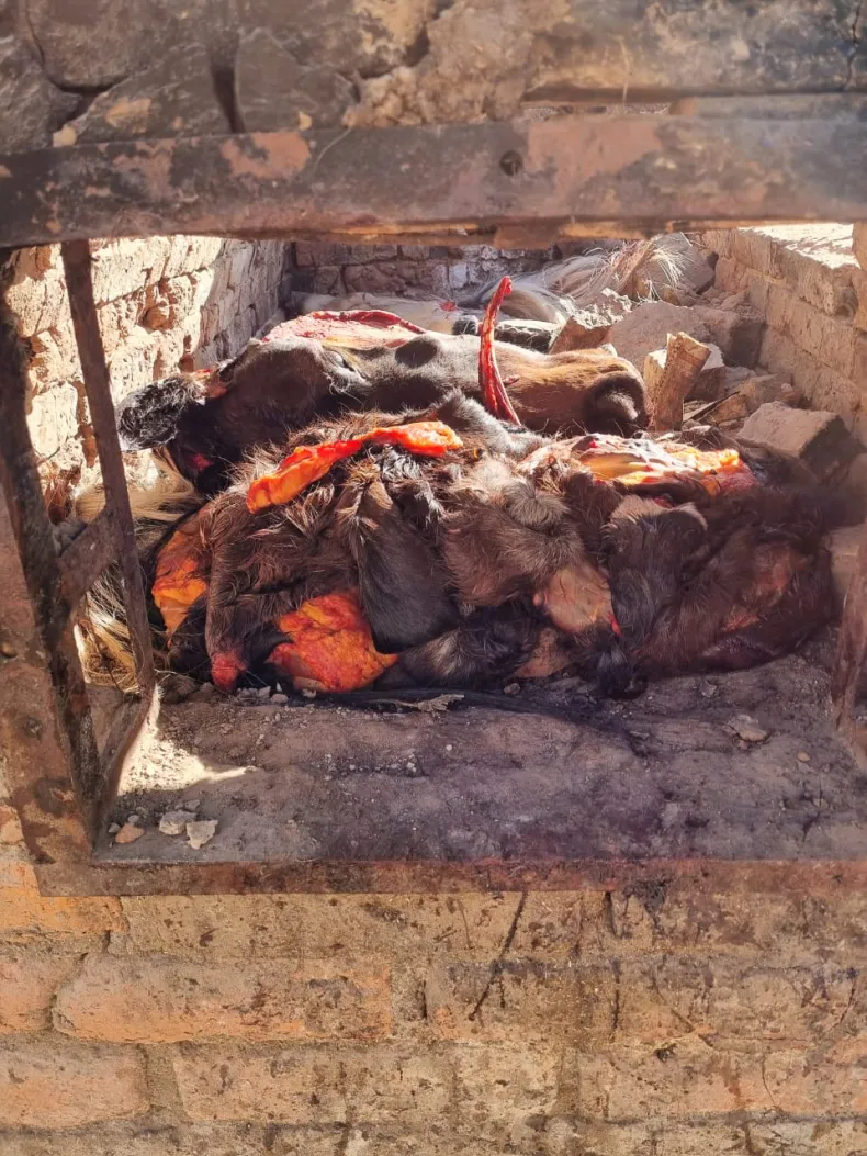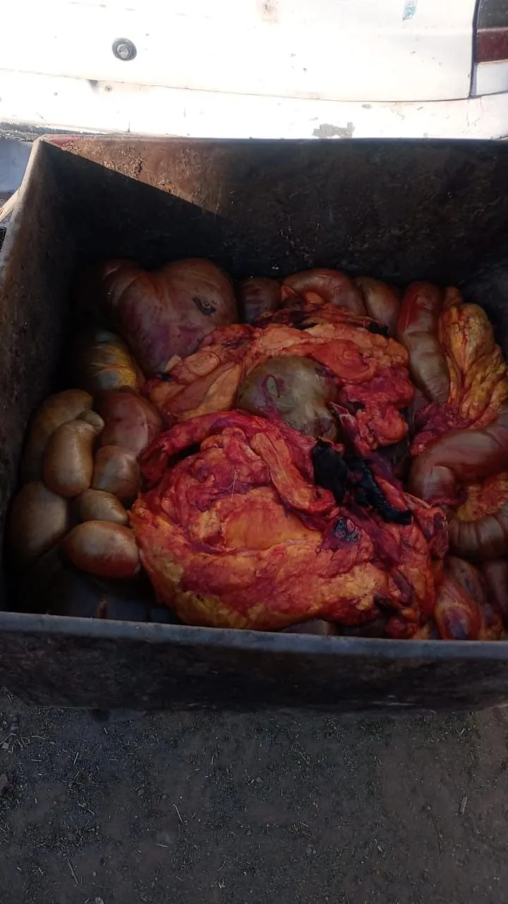 Los uniformados, al entrar a la finca, observaron que una carretilla estaba llena de vísceras de animal, en un pozo varios huesos de caballo y en un horno, ocultaba las cabezas y las patas de los animales.