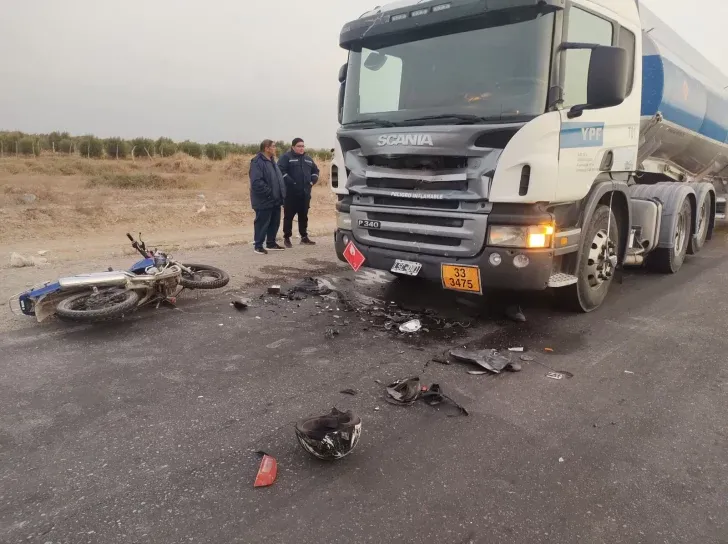 Según el informe policial, alrededor a las 7.40, el conductor de una motocicleta Yamaha, identificado Alexis Franco, transitaba por la ruta hacia el norte, por causas que se buscarán establecer, perdió el control de su vehículo e impactó en el frente de un camión Scania con identificación de YPF que estaba estacionado en el carril oeste de la calzada con dirección al sur, es decir en la mano contraria.