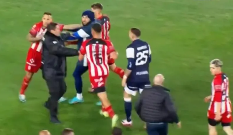 La acción derivó en un intercambio de golpes y empujones por parte de jugadores de los dos equipos.