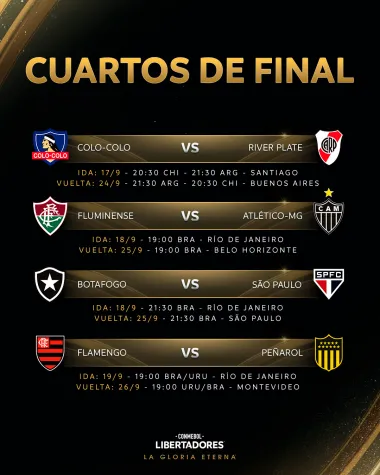 River conoce el día y el horario en el que jugará la serie de cuartos de final de la Copa Libertadores ante Colo Colo de Chile. El partido de ida se disputará el martes 17 de semptiembre, mientras que la vuelta será el 24 del mismo mes.