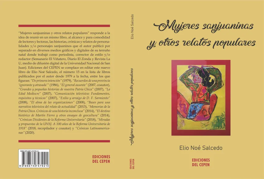 Publicado originalmente en 2020 en Córdoba, "Mujeres sanjuaninas y otros relatos populares" es el decimoquinto libro en la trayectoria de Elio Noé Salcedo. Este libro es una recopilación de relatos que el autor ha ido publicando a lo largo de los años en medios de comunicación de San Juan, como el semanario El Viñatero, Diario El Zonda y Revista la U de la UNSJ. Cada capítulo ofrece una visión única sobre la vida y las experiencias de mujeres y personajes sanjuaninos, revelando aspectos emotivos y significativos de la vida en la provincia.