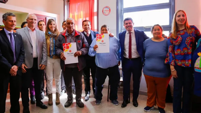 Lo acompañaron los ministros de Gobierno, Laura Palma;Educación, SilviaFuentes; Familia y Desarrollo Humano, Carlos Platero; el intendente de Albardón, Juan Carlos Abarca y la directora de Políticas para la Equidad, Nathalia Sánchez.