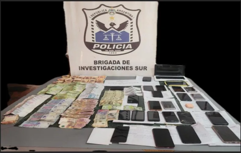 Seis fueron las detenciones, algunos de ellos con antecedentes policiales. Todos quedaron a dispsosión de la Justicia sanjuanina. Tambien secuestraron celulares, pesos y moneda extranjera.
