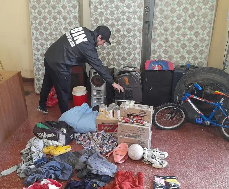 En el lugar, los policías secuestraron, tres colchones nuevos de una plaza con su envoltorio correspondiente; cinco valijas de viaje; un camperón Adidas; una campera de niño; un tapado; una cubierta de camioneta marca wind force; una caja de latas de durazno, una caja de turrones, un equipo de música, una bicicleta rodado 16, una juguera, 32 pares de medias de futbol y varias prendas de vestir de distintas marcas y talles.