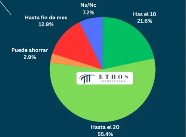 En otro de los datos recabados, aseguran que el 21.6% de los jubilados puede llegar hasta el 10 de cada mes con sus ingresos, mientras que solo un 12.9% llegan a fin de mes y el 2.9% puede ahorrar.