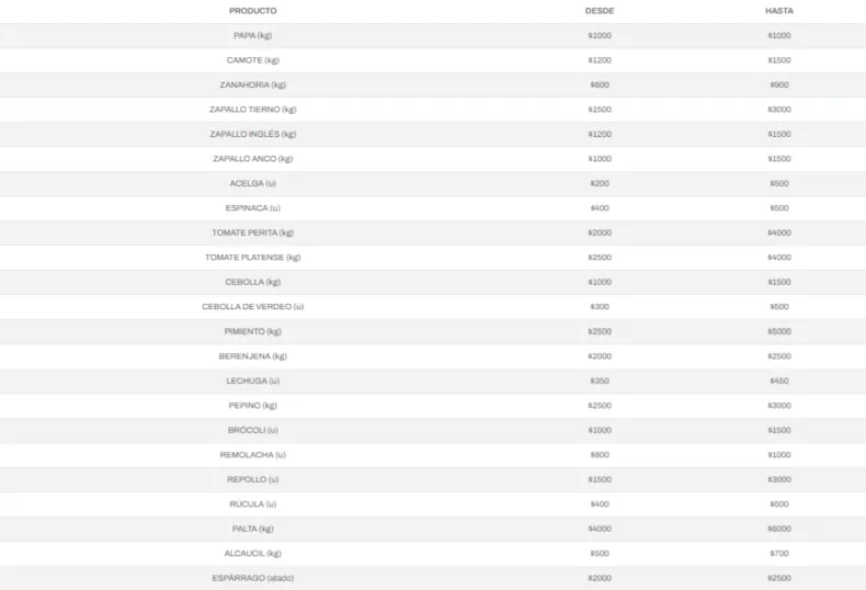 La Municipalidad de la Ciudad de San Juan dio a conocer los precios semanales de la Feria Municipal y el Mercado de Abasto.