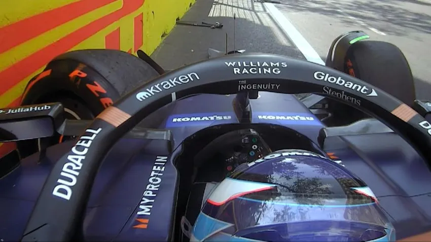"PERDÓN POR ESO, MUCHACHOS". Franco Colapinto y el pedido de disculpas al equipo por el accidente que tuvo al perder el control del Williams.