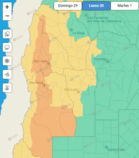 El SMN declaró a toda la provincia de San Juan en alerta meteorológica por viento Zonda para el lunes 30 de septiembre.
