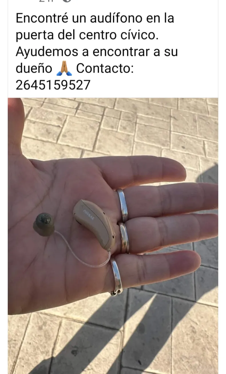 Si algo bueno tienen los sanjuaninos es la solidaridad, hacia los demás. Una muestra clara de eso, es que una sanjuanina publicó en la página de Red Solidaría, el hallazgo de un audífono, que fue encontrado en las puertas del Centro Cívico, en la Capital sanjuanina, y por ende busca a su propietario.