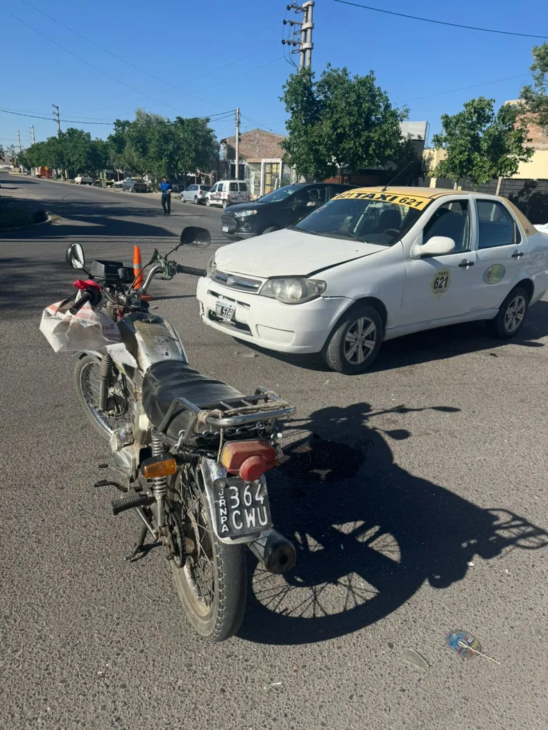 Un motociclista, identificado por la justicia como Andrés Castro (67), tuvo que ser trasladado hasta el servicio de urgencia del Hospital Rawson, al ser embestido por un automóvil marca Fiat Siena, que trabaja como remis, que era conducida por una mujer identificada como Abigaíl Vila.