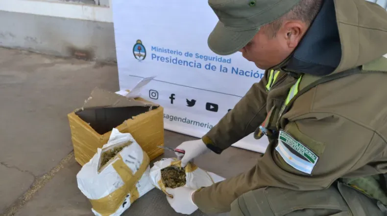 Al cabo de un tiempo, se presentaron dos hombres que se movilizan en una moto preguntando por la encomienda. Al requisarlos, los gendarmes les encontraron porros y algunos gramos más de marihuana.
