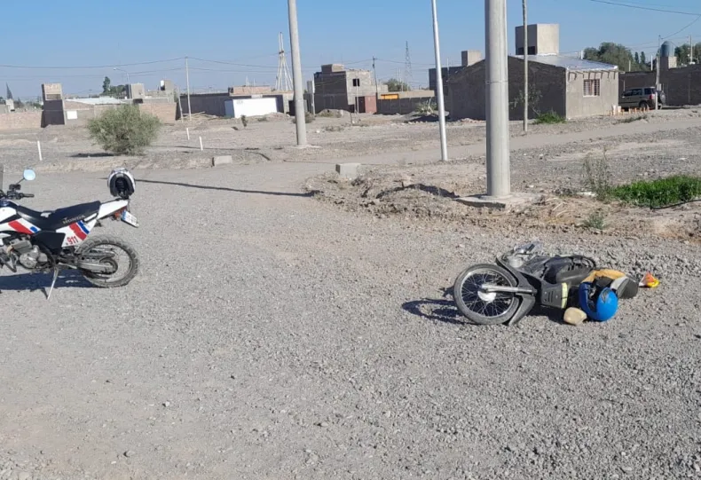 Un hombre perdió el control de su motocicleta y cayó al suelo en la intersección de calle Meglioli y Cabot, en el departamento de Rivadavia.