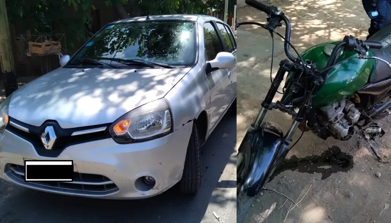 Este sábado 5 de octubre de 2024, alrededor de las 13:30 horas, se produjo un siniestro vial en la intersección de las calles Juan José Bustos y Urquiza, en el departamento de Caucete. El choque involucró a un Renault Clío, conducido por Johana López, y una motocicleta Motomel 150, en la que viajaban Orlando Oyola y Enzo Cabrera.
