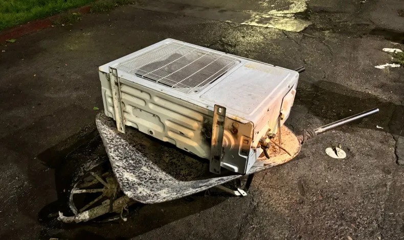 Con una carretilla, jóvenes roban el motor de un aire acondicionado